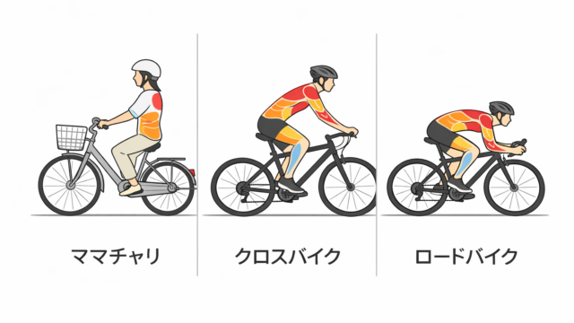 実際、無理に重いギアを踏み続けると、ペダルを回すというより「踏みつける動き」になりやすく、結果的に筋トレのような負担になってしまいます。